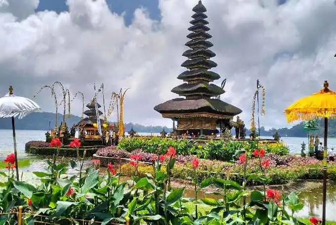 ウルン・ダヌ・ブラタン寺院は、バリ島中部、標高1500mの高原地帯ブドゥグルにあるブラタン湖畔に佇み、まるで湖の上に浮かぶように造られた美しい寺院です。バリの南部にある海に浮かぶタナロット寺院 とともに景観が美しい寺院としてバリでも人気のスポットです。