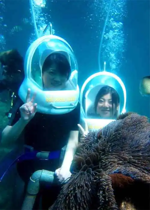 利用説明後、専用のポンツーンに移動して、水深2.5-4Mの水中散策を25分程度楽しみます。